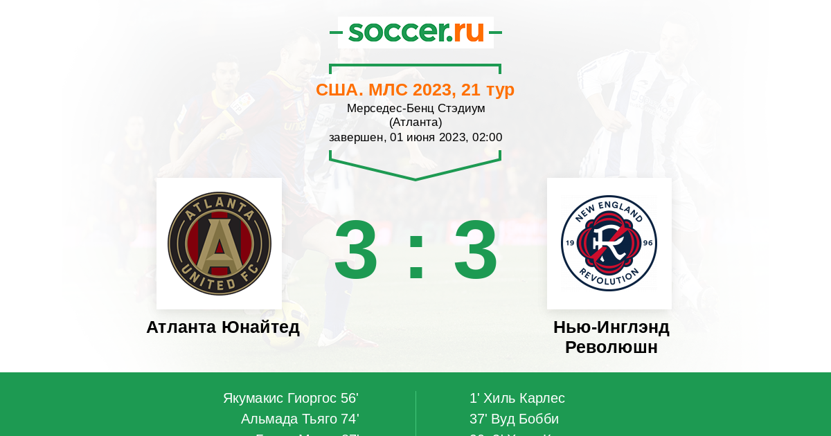 Протокол матча Атланта Юнайтед против Нью-Инглэнд Революшн