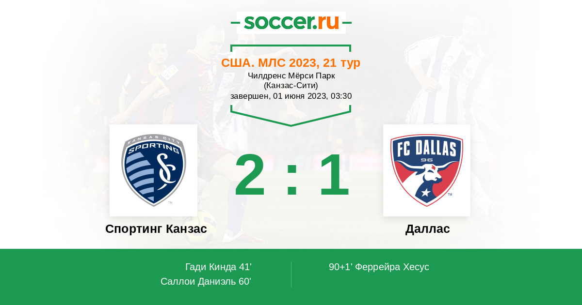 Протокол матча Спортинг Канзас против Даллас