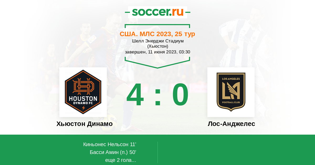 Протокол матча Хьюстон Динамо против Лос-Анджелес