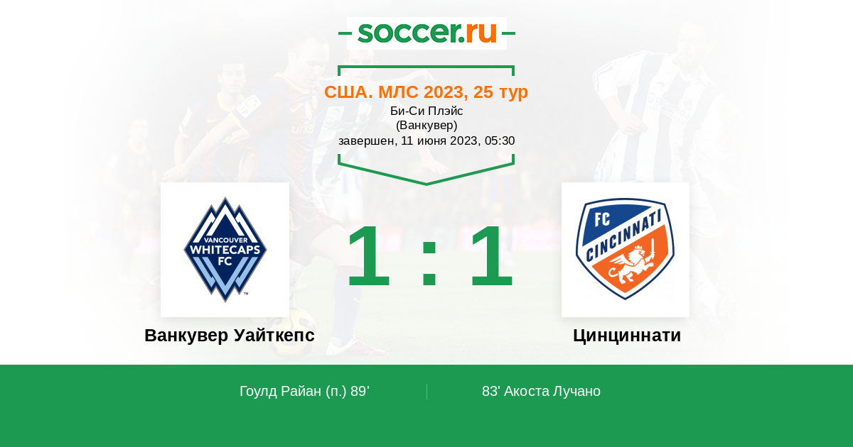 Протокол матча Ванкувер Уайткепс против Цинциннати