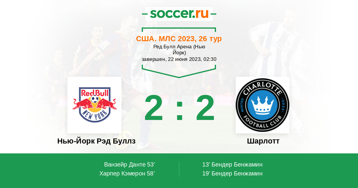 Протокол матча Нью-Йорк Рэд Буллз против Шарлотт