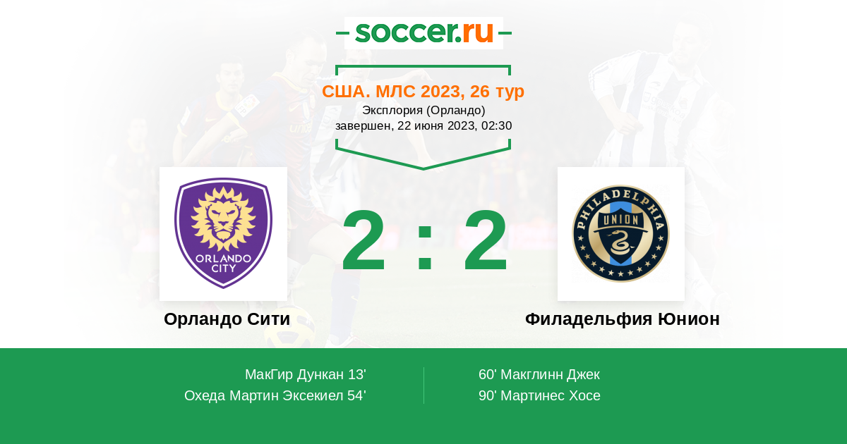 Протокол матча Орландо Сити против Филадельфия Юнион