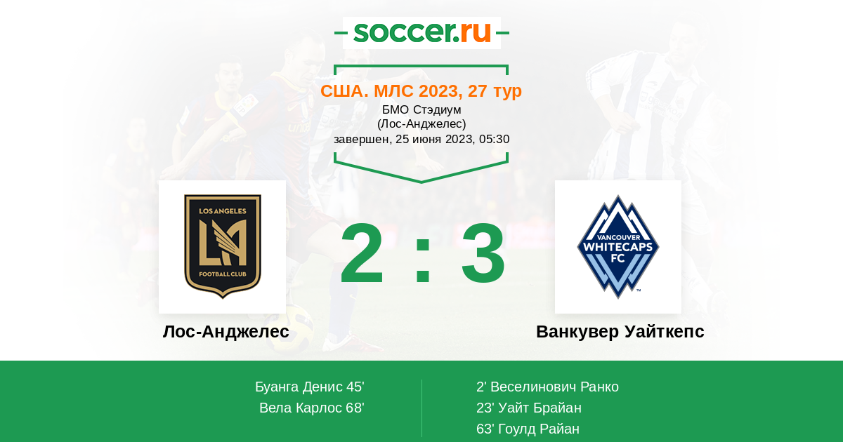 Протокол матча Лос-Анджелес против Ванкувер Уайткепс