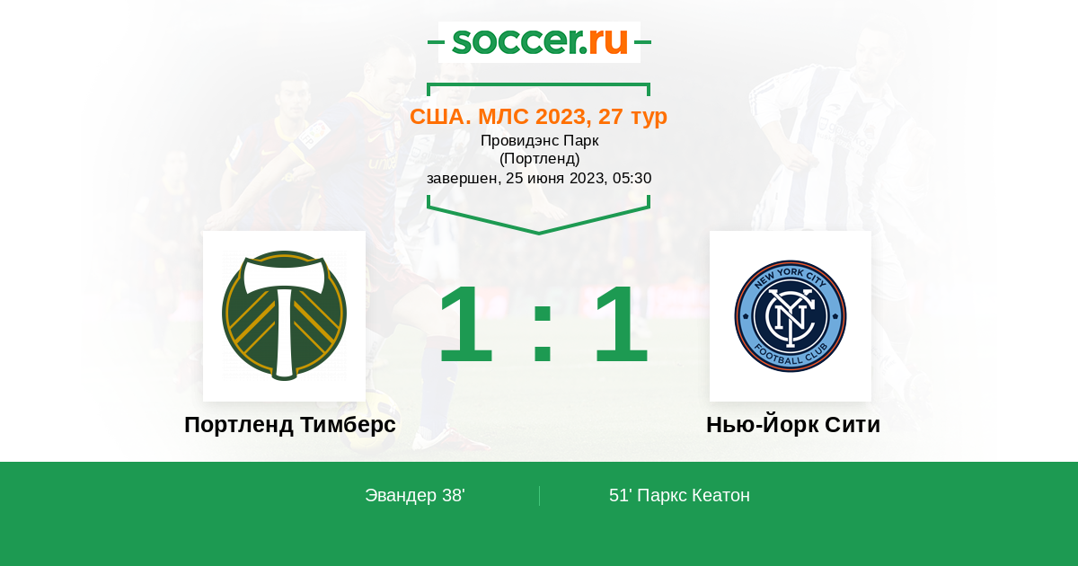 Протокол матча Портленд Тимберс против Нью-Йорк Сити