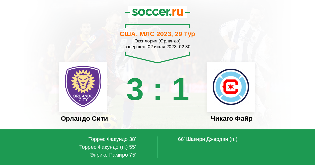 Протокол матча Орландо Сити против Чикаго Файр