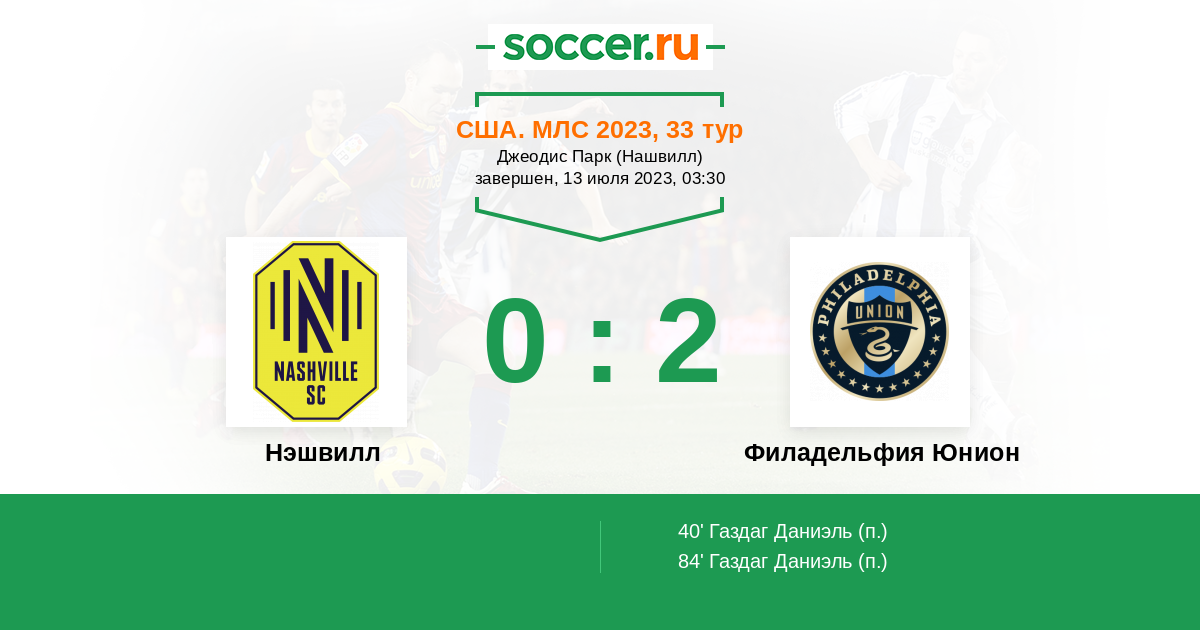 Протокол матча Нэшвилл против Филадельфия Юнион