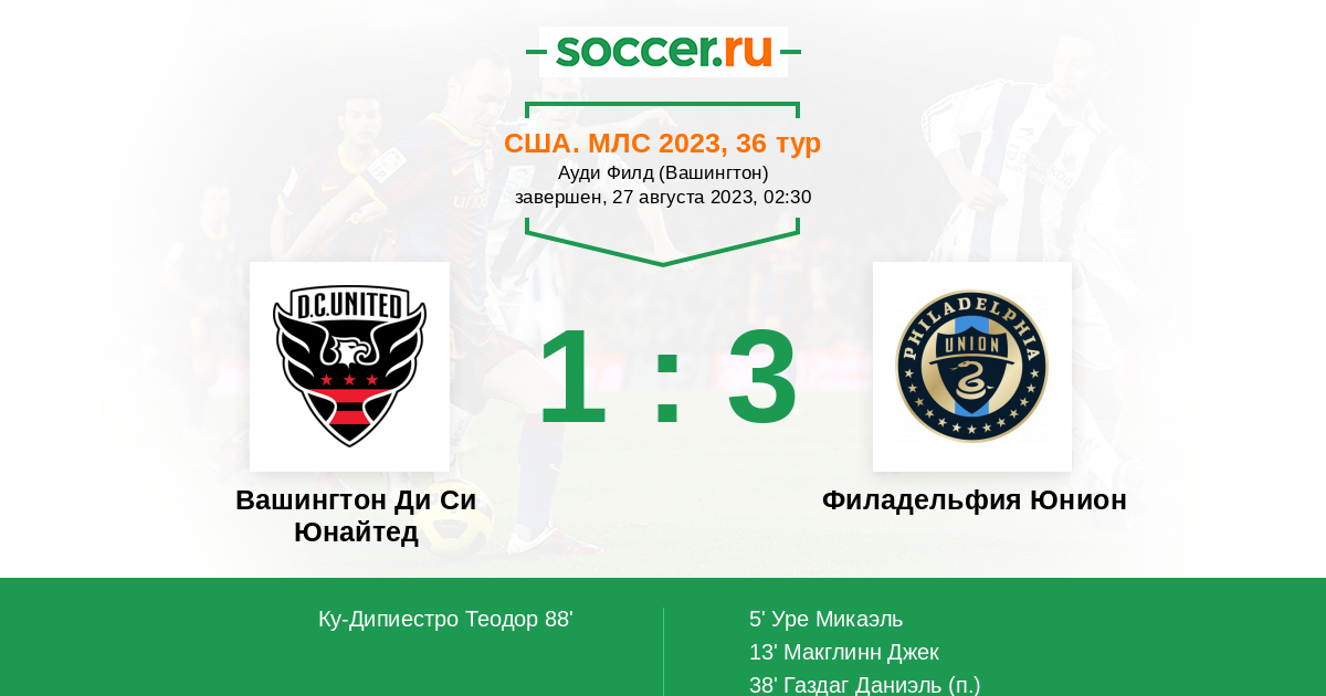 Протокол матча Вашингтон Ди Си Юнайтед против Филадельфия Юнион
