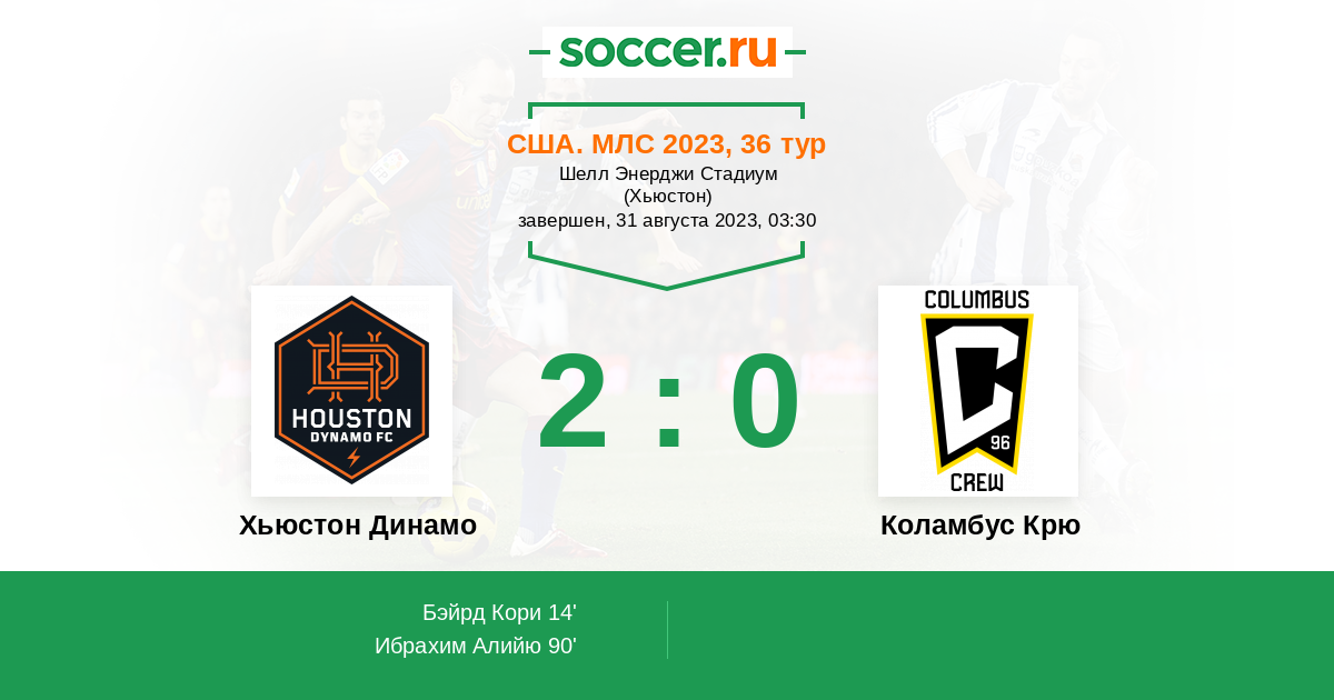 Протокол матча Хьюстон Динамо против Коламбус Крю