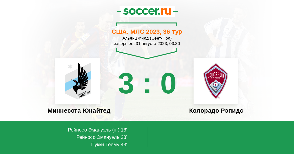 Протокол матча Миннесота Юнайтед против Колорадо Рэпидс