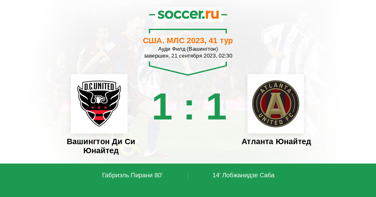 Протокол матча Вашингтон Ди Си Юнайтед против Атланта Юнайтед