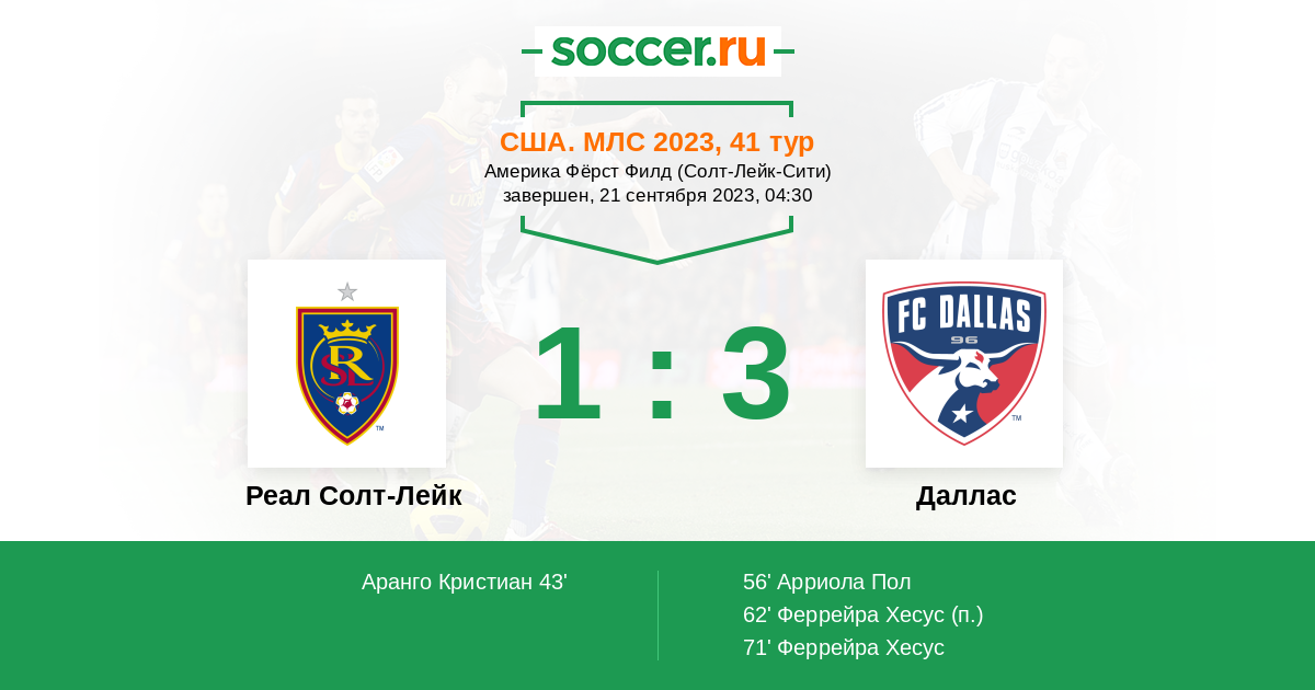 Протокол матча Реал Солт-Лейк против Даллас