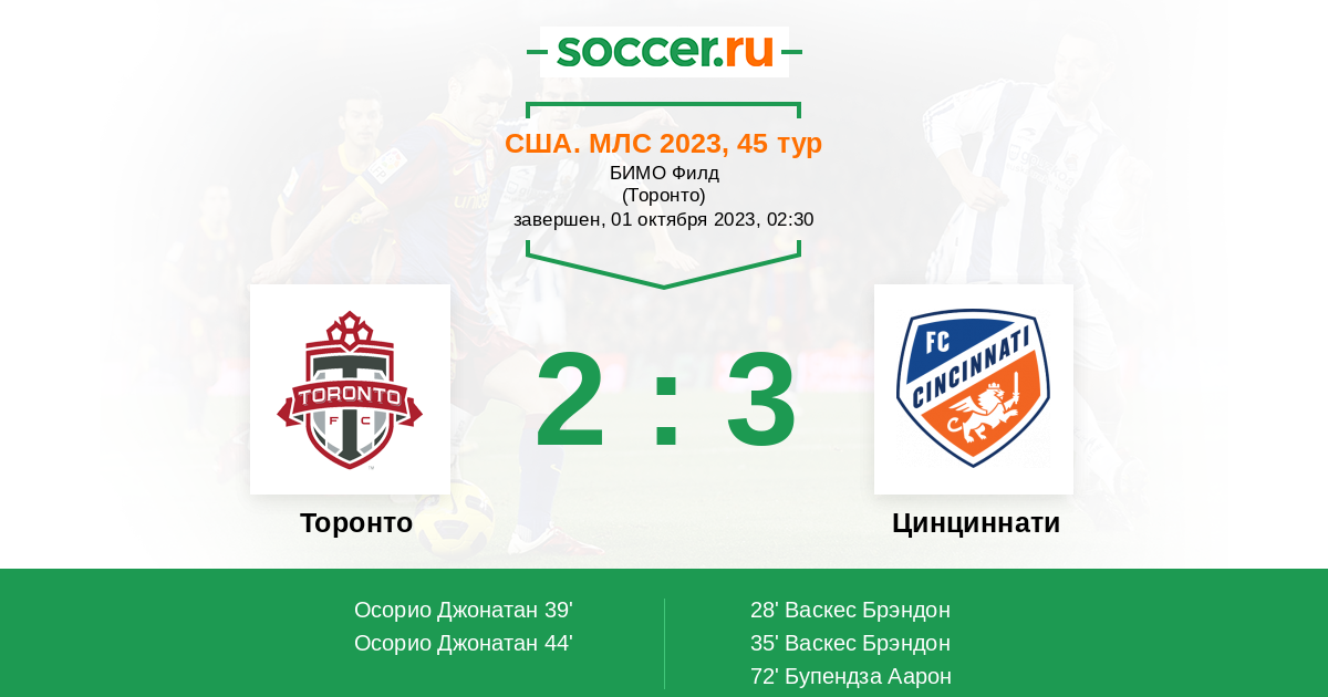 Протокол матча Торонто против Цинциннати