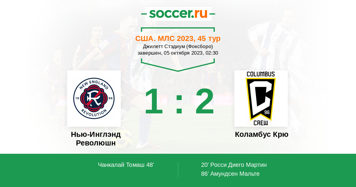 Протокол матча Нью-Инглэнд Революшн против Коламбус Крю