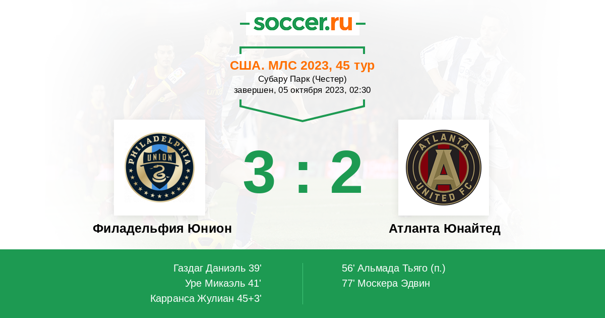Протокол матча Филадельфия Юнион против Атланта Юнайтед
