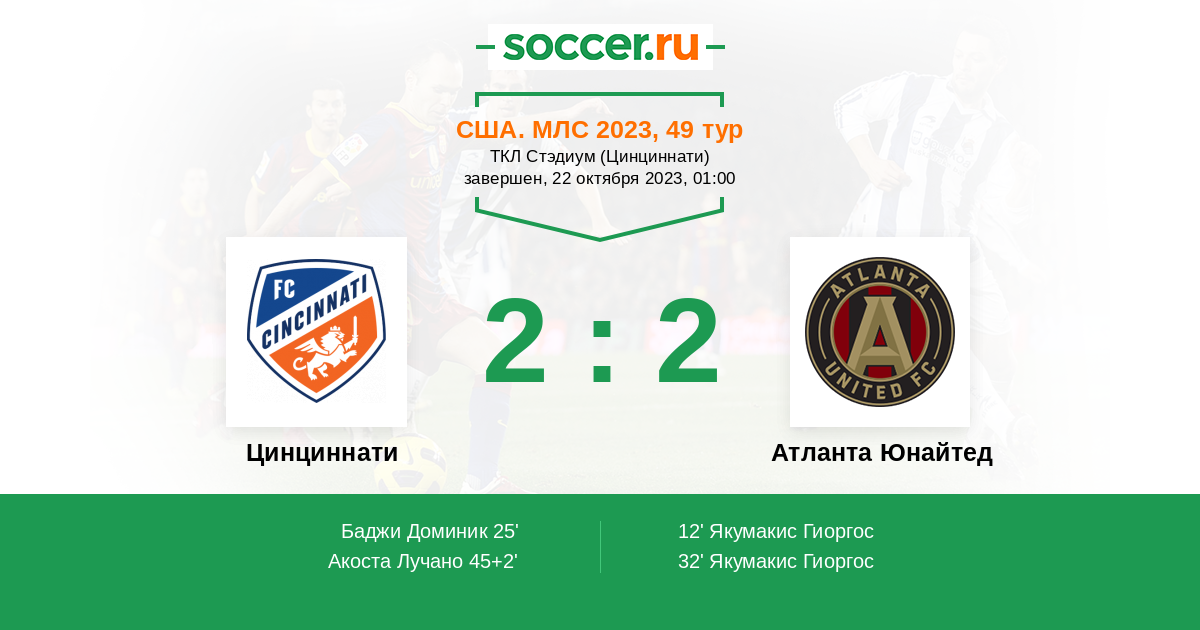 Протокол матча Цинциннати против Атланта Юнайтед