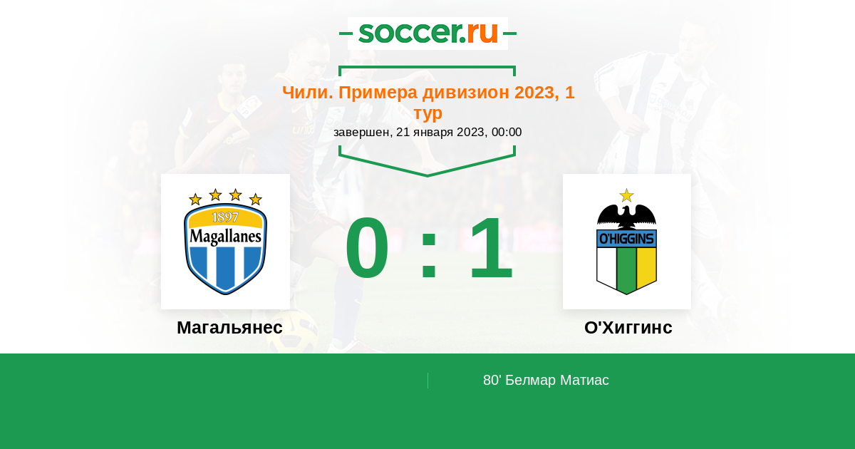 Протокол матча Магальянес против О'Хиггинс