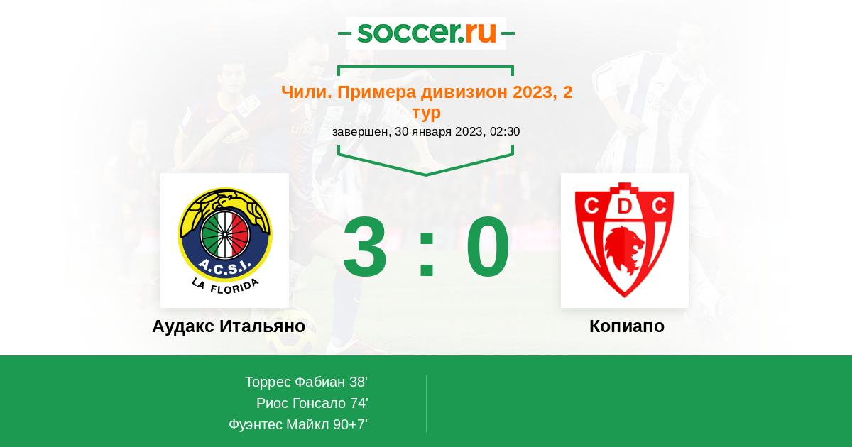 Протокол матча Аудакс Итальяно против Копиапо