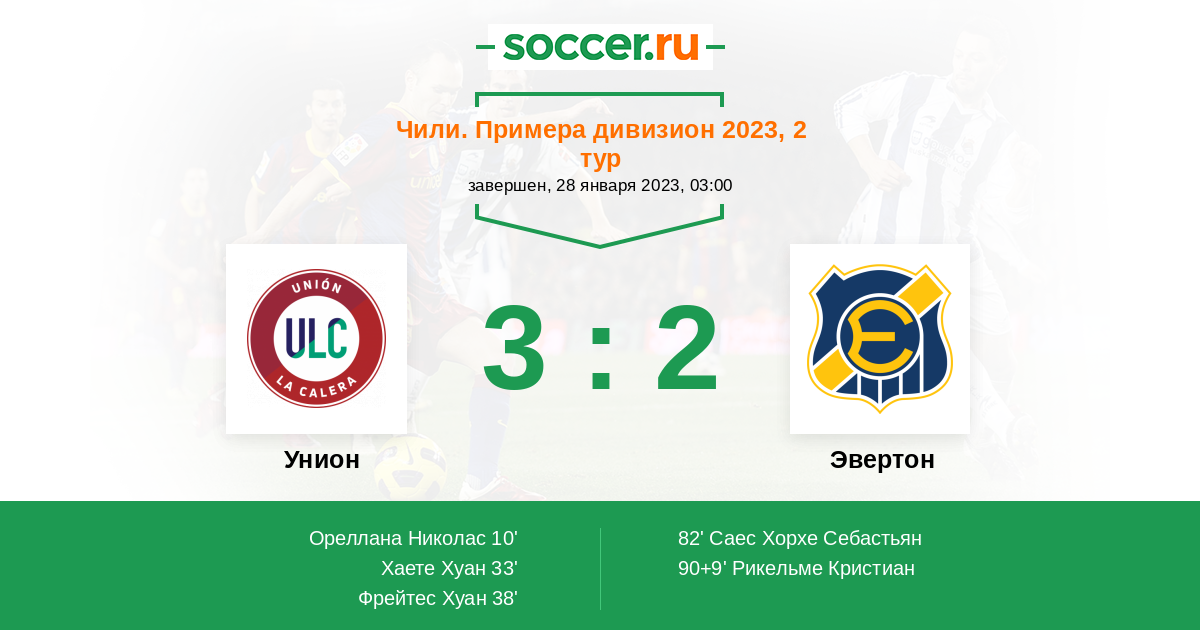 Протокол матча Унион против Эвертон