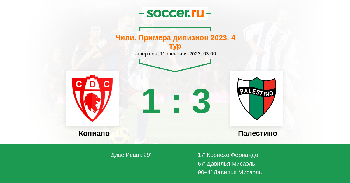 Протокол матча Копиапо против Палестино