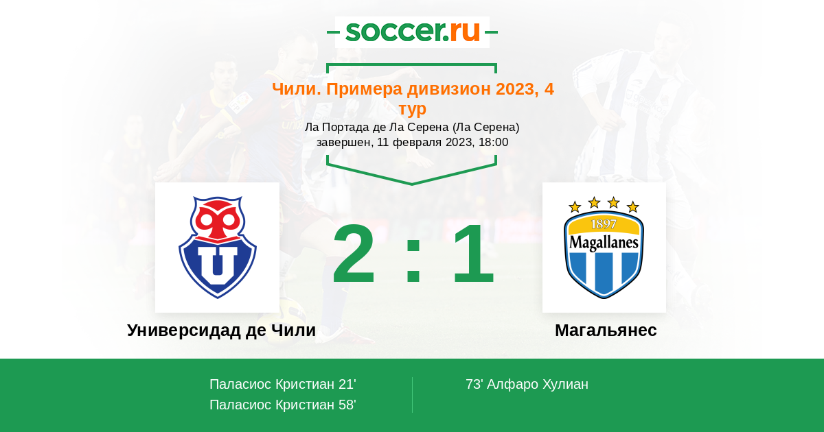 21' (1:0) Паласиос Кристиан (30) (Охеда Педро (5))