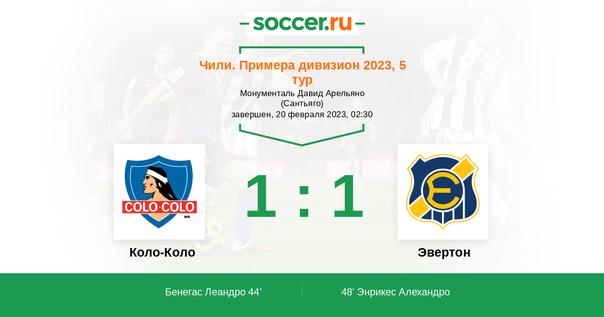 Протокол матча Коло-Коло против Эвертон