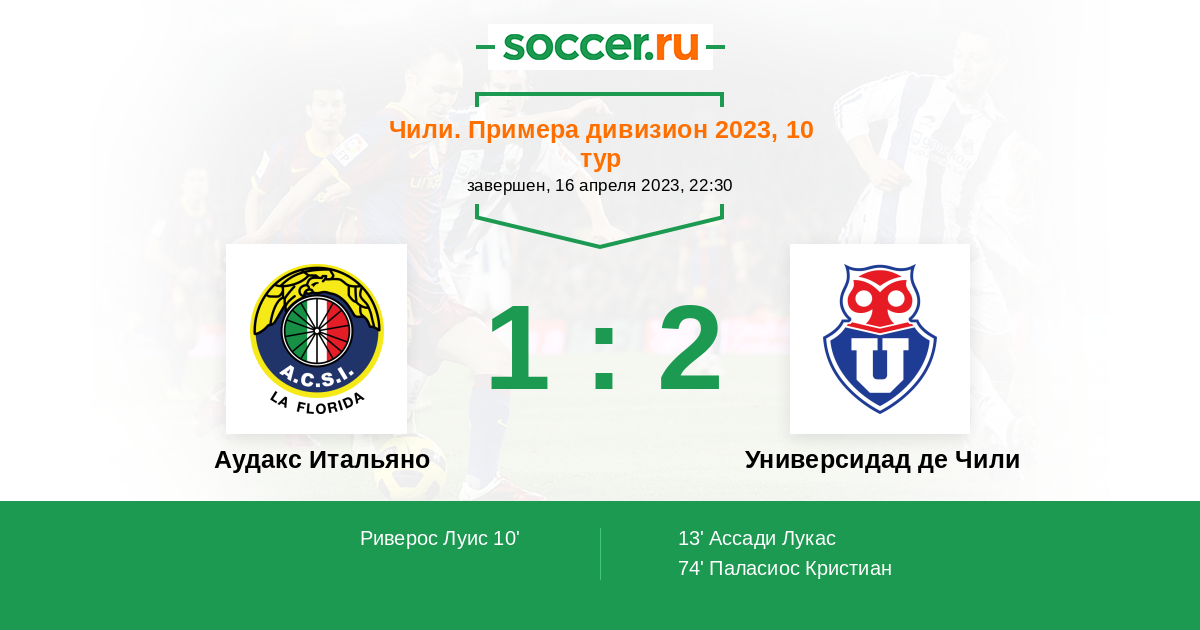 Протокол матча Аудакс Итальяно против Универсидад де Чили