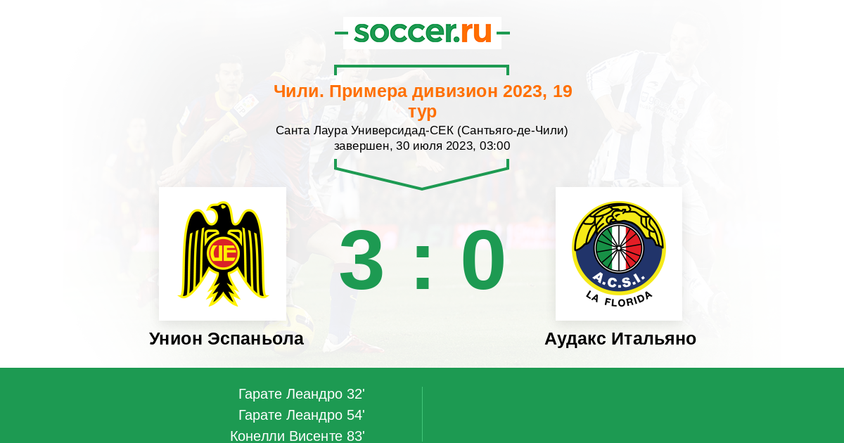 Протокол матча Унион Эспаньола против Аудакс Итальяно