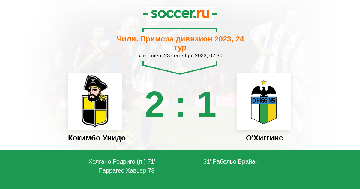 Протокол матча Кокимбо Унидо против О'Хиггинс