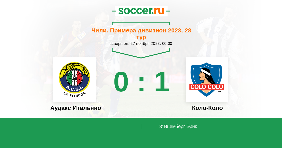 Протокол матча Аудакс Итальяно против Коло-Коло