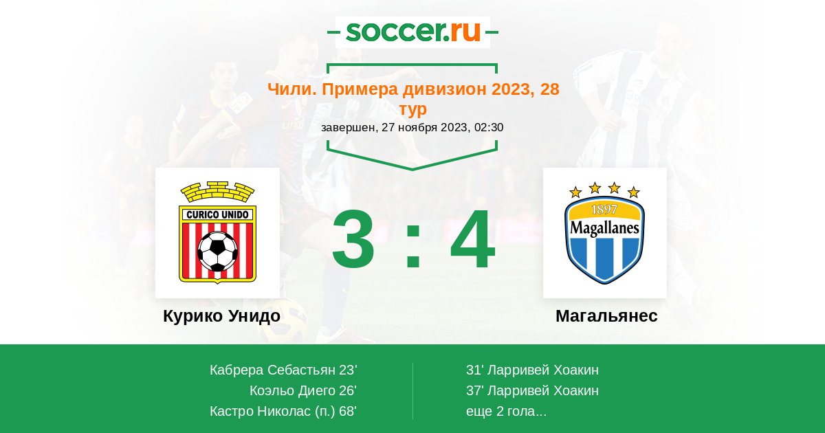 Протокол матча Курико Унидо против Магальянес