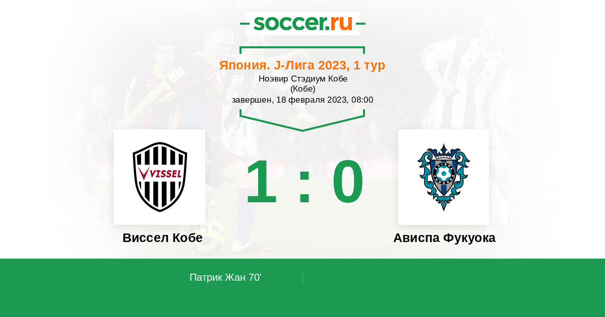 Протокол матча Виссел Кобе против Ависпа Фукуока