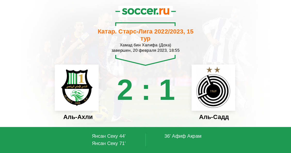 36' (0:1) Афиф Акрам (63) (Бунеджа Багдад (11))