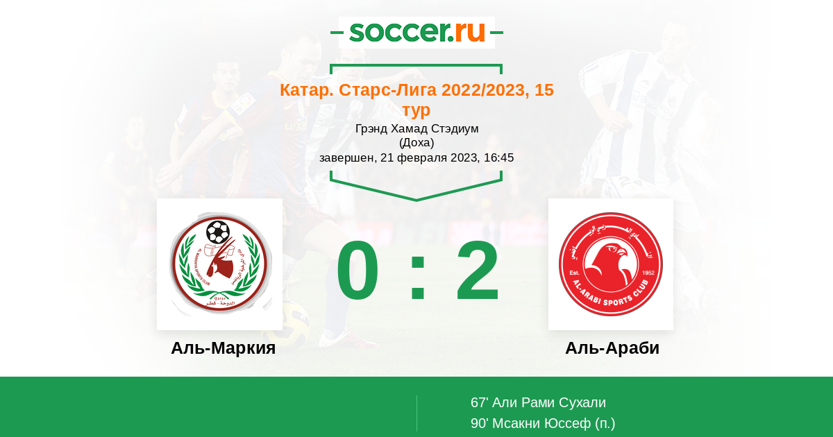 Протокол матча Аль-Маркия против Аль-Араби
