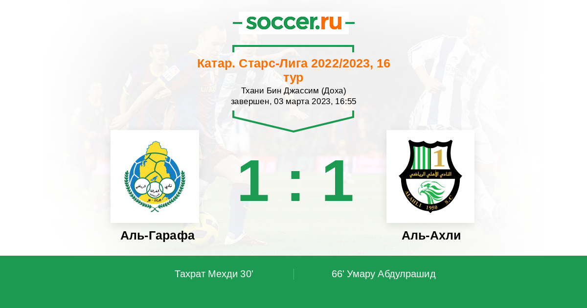 Протокол матча Аль-Гарафа против Аль-Ахли