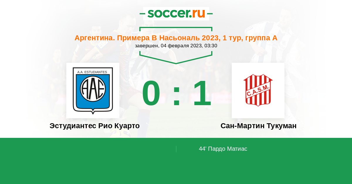Протокол матча Эстудиантес Рио Куарто против Сан-Мартин Тукуман