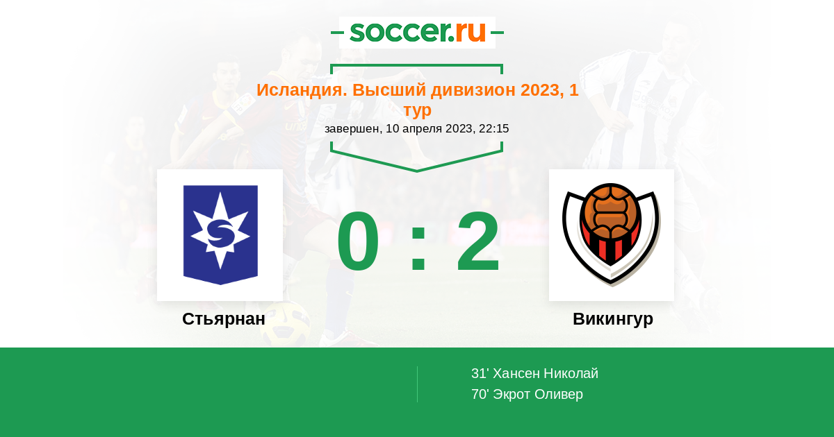 Протокол матча Стьярнан против Викингур