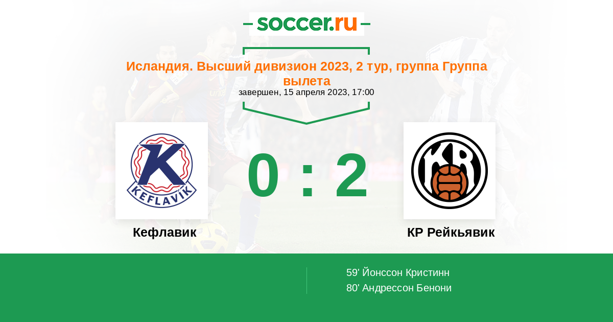 Протокол матча Кефлавик против КР Рейкьявик