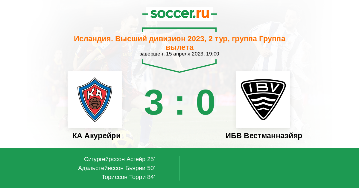 Протокол матча КА Акурейри против ИБВ Вестманнаэйяр