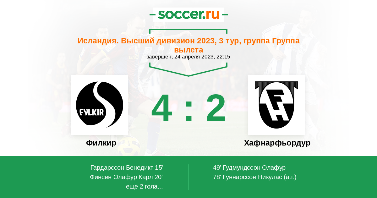 82' (3:2) Эйперссон Асгейр (2) (Боргпорссон Оскар (77))