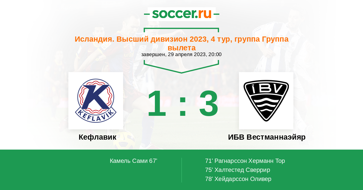 Протокол матча Кефлавик против ИБВ Вестманнаэйяр