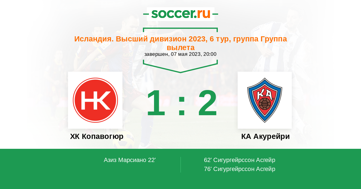 22' (1:0) Азиз Марсиано (11) (Андрасон Атли Храфн (10))