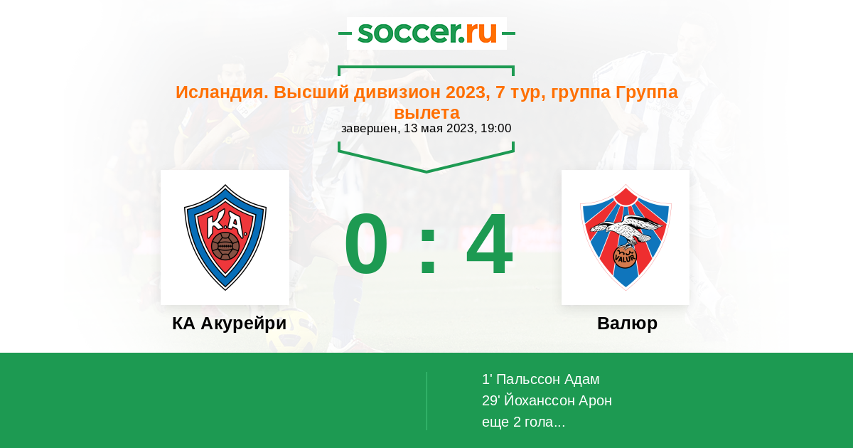 Протокол матча КА Акурейри против Валюр