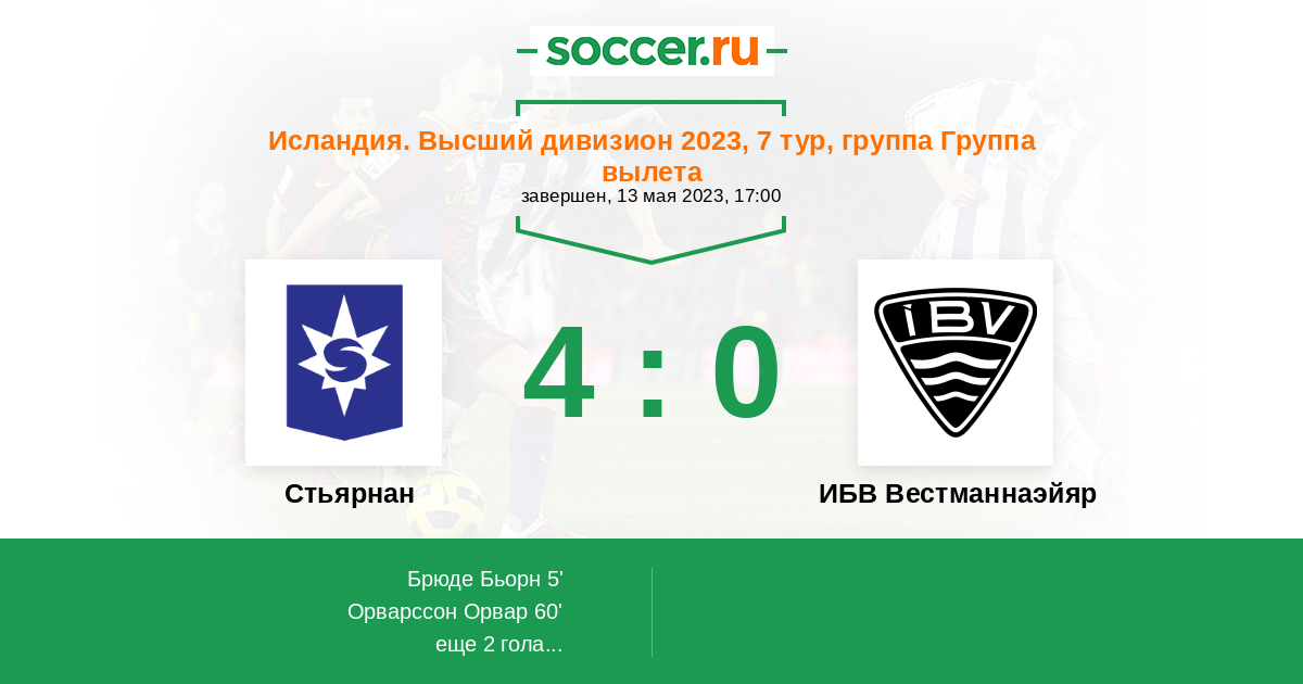 Протокол матча Стьярнан против ИБВ Вестманнаэйяр