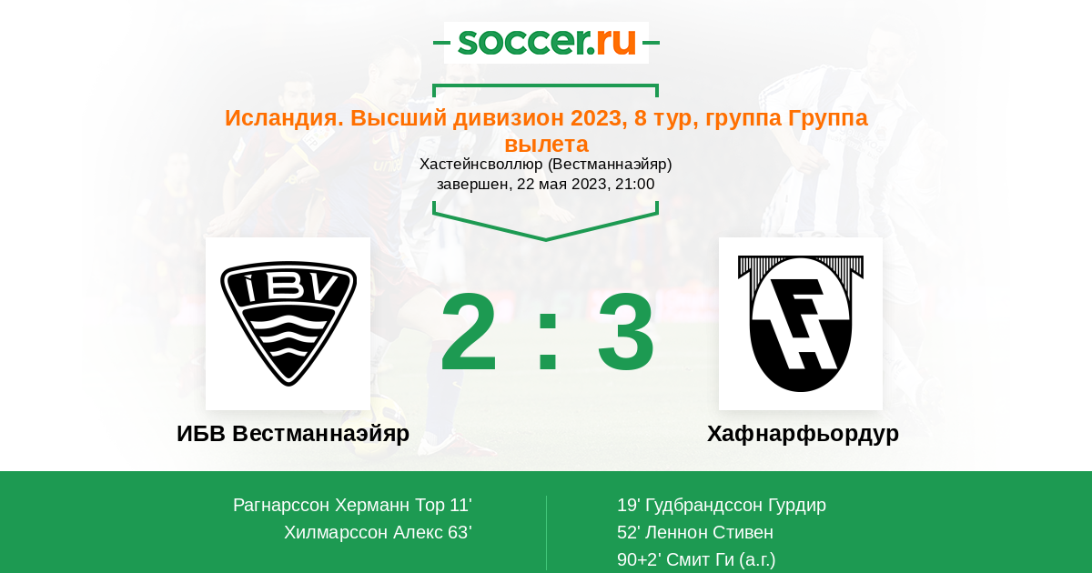 Протокол матча ИБВ Вестманнаэйяр против Хафнарфьордур