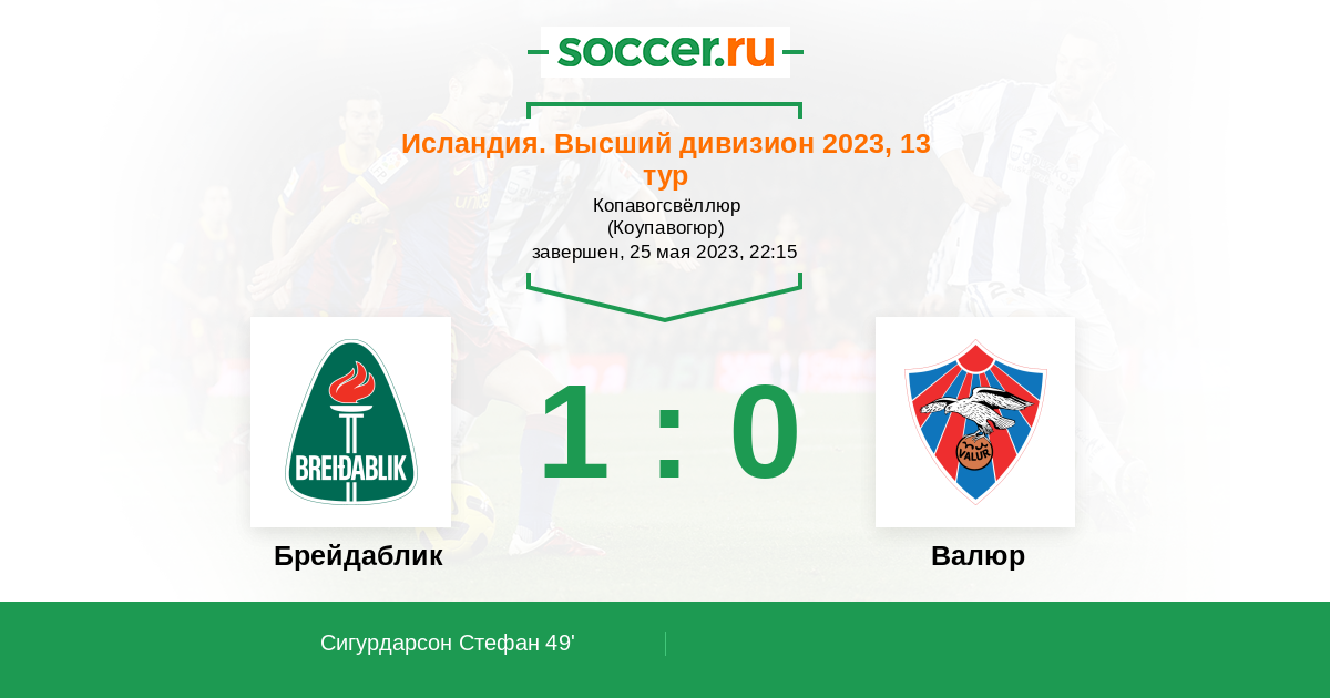 49' (1:0) Сигурдарсон Стефан (23)