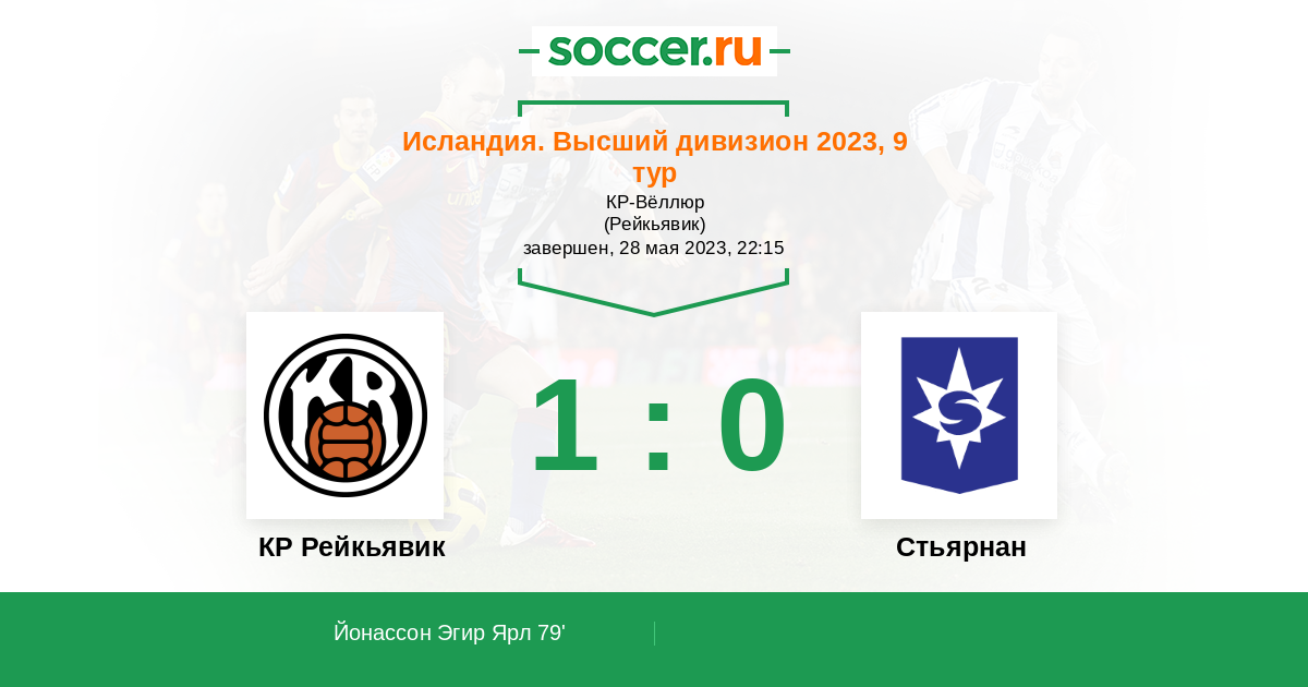Протокол матча КР Рейкьявик против Стьярнан