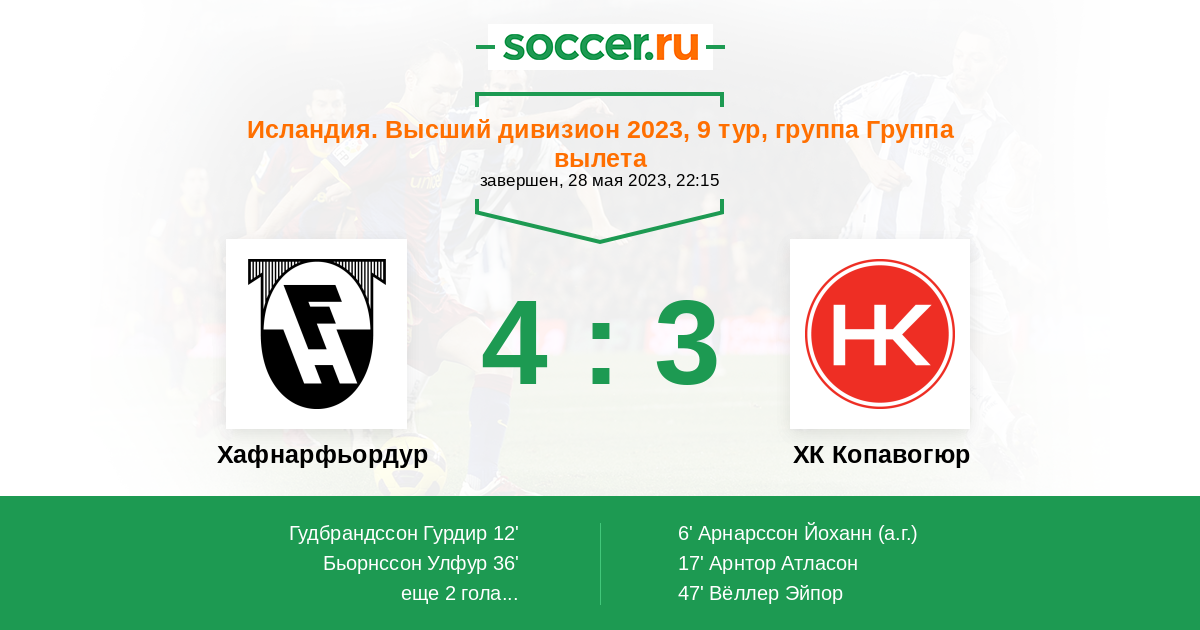 Протокол матча Хафнарфьордур против ХК Копавогюр