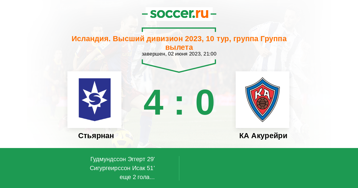 51' (2:0) Сигургеирссон Исак (7) (Кьяртанссон Кьяртан (30))