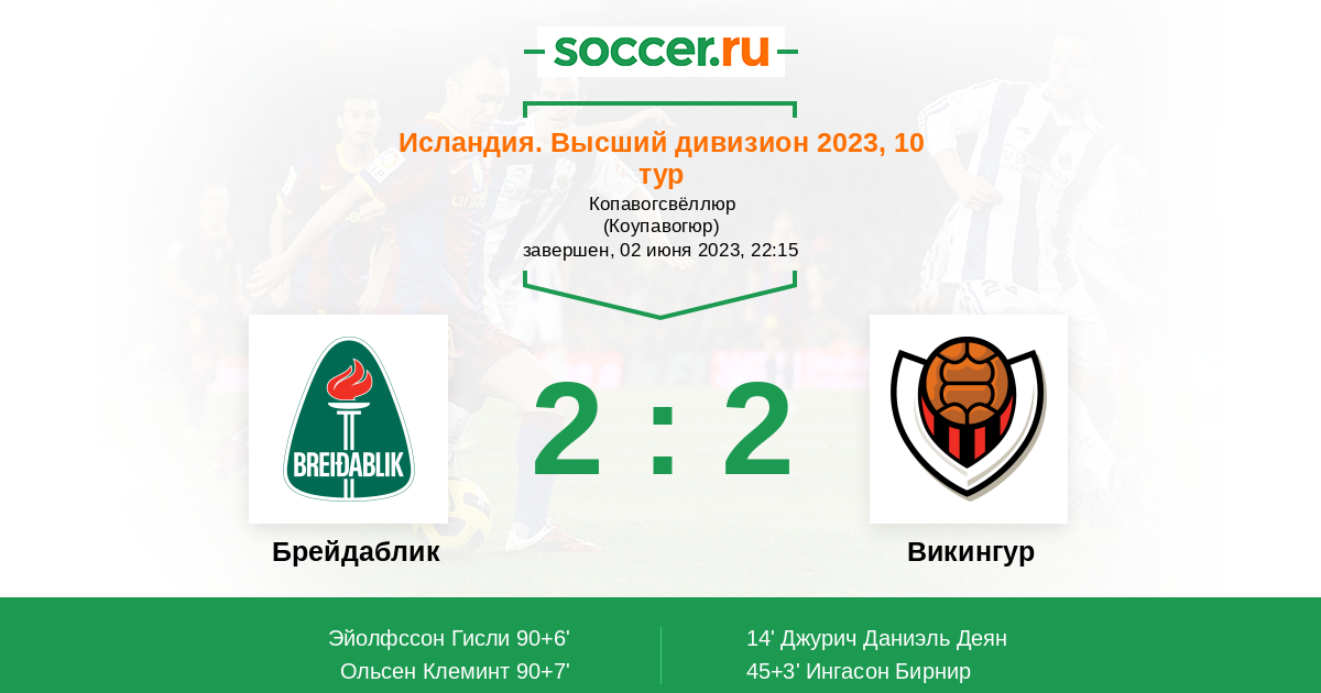 Гол90+6' (1:2) Эйолфссон Гисли (11) (Гуннлаугссон Хескулдур (7))