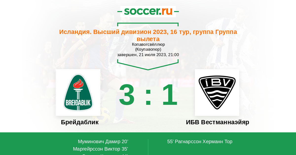 Протокол матча Брейдаблик против ИБВ Вестманнаэйяр
